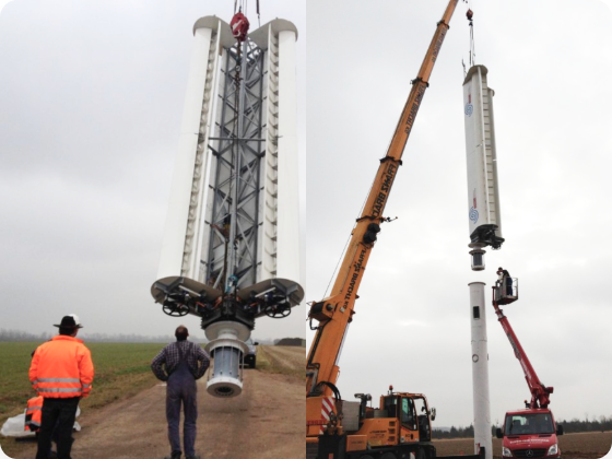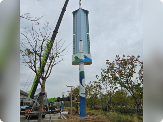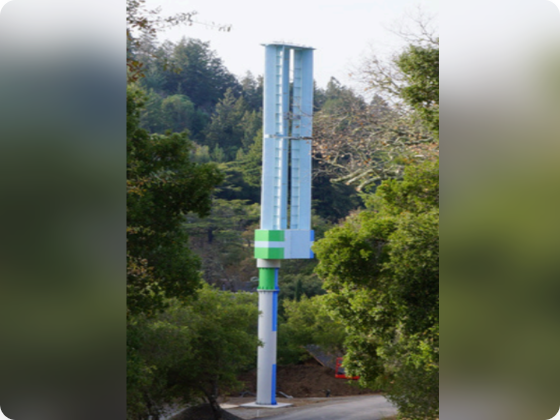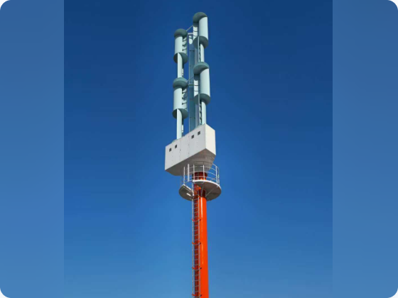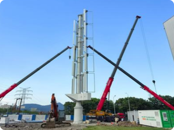 在高速公路、铁路沿线安装垂直轴风机,风机机身与电子广告、路灯等集成,为路灯、广告供能的同时,多余电力可并网或就近消纳,与周边环境完美融合; 在运营商铁塔改造中,配合基站的建设,风机替换常规信号塔塔楼,解决通信基站供电问题的同时,实现基站信号的传输。